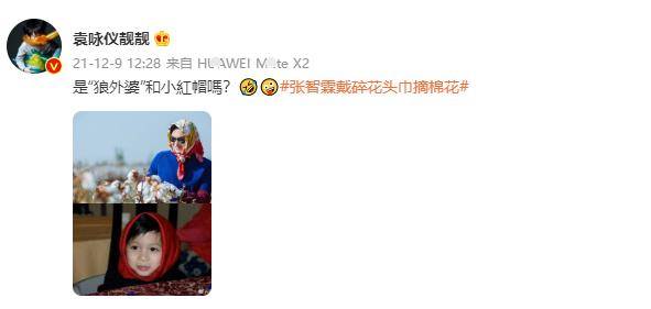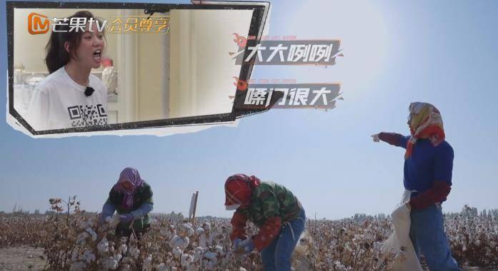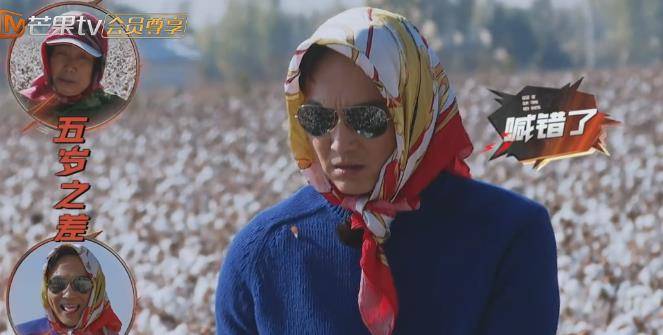 “碎花头巾”是采棉花标配,不过,脑补画面莫名有点诡异。张智霖脸上写满了抗拒,最后的倔强戳中笑点。