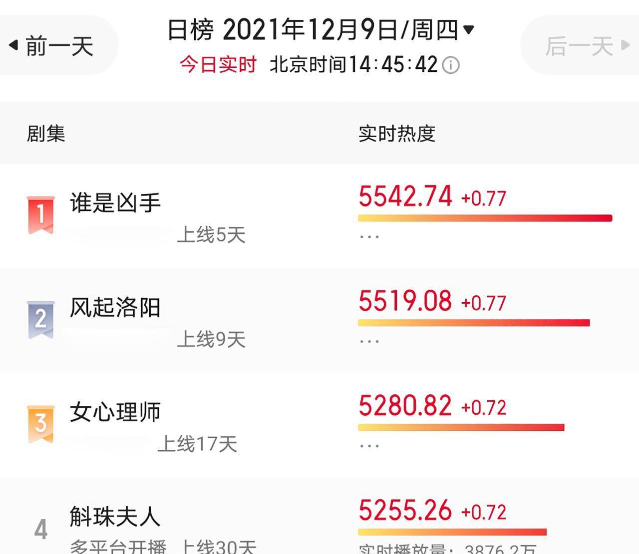 12月9日,赵丽颖、肖央、董子健主演的悬疑网剧《谁是凶手》在上线开播第5天的时候,终于超越了《风起洛阳》《女心理师》和《斛珠夫人》,登上了全网热度名的宝座。