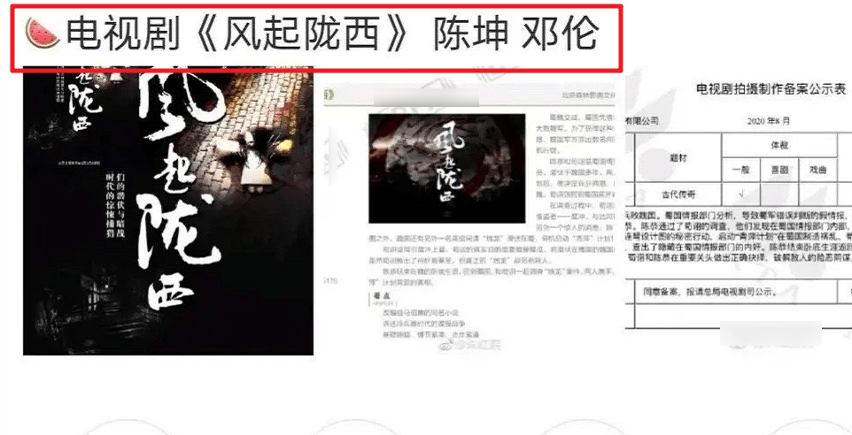 网传邓伦、陈坤主演《风起陇西》
