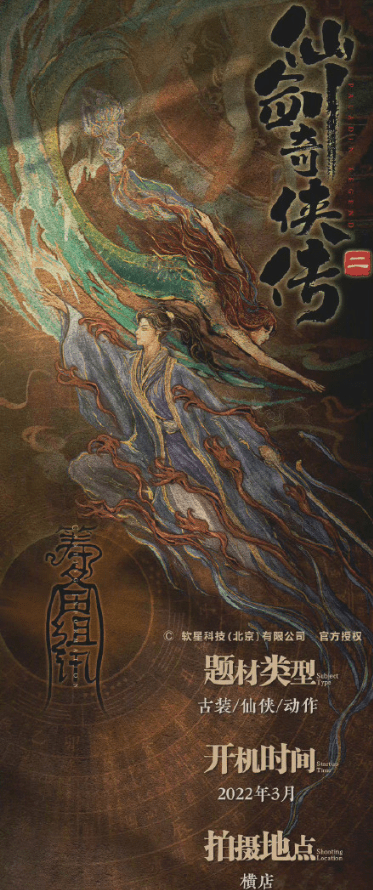 根据组讯,古装仙侠作品《仙剑奇侠传二》计划于2022年3月在横店开机,李逍遥、赵灵儿、林月如等也出现在角色表中